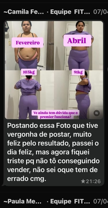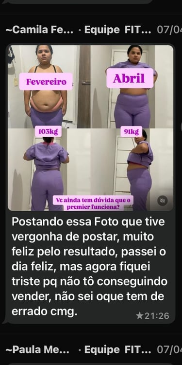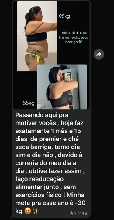 Vejo os resultados de nossos clientes, depois de algumas semanas tomando o Premier.